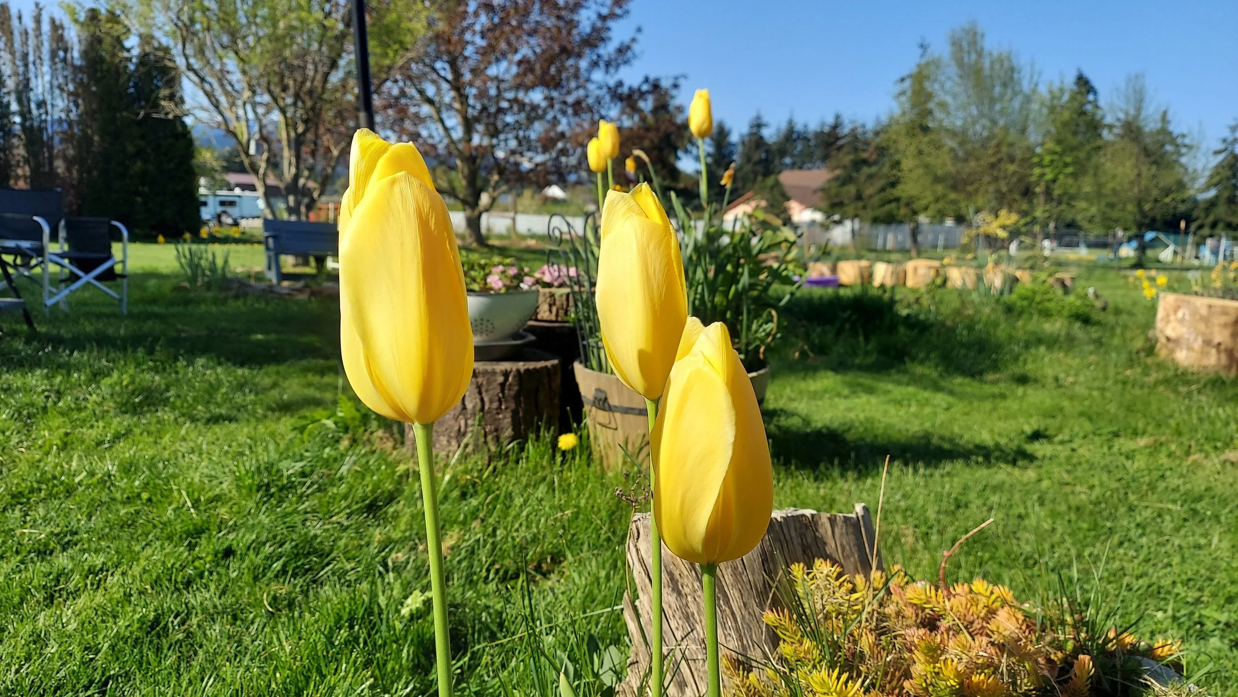We decided to enjoy our lunch at home on the Minipawss Farm because it was a bit windy and cold at Madison Falls. Back home, it was warm and sunny. We enjoyed all our pastries. (Yes, plural). Vegetarian scone, ham and cheese scone and marionberry scone topped with whipped cream. Ooooooo.I laughed, "it took more time to eat all the good food than to take the walk to the waterfall." Altogether a great Tuesday morning.